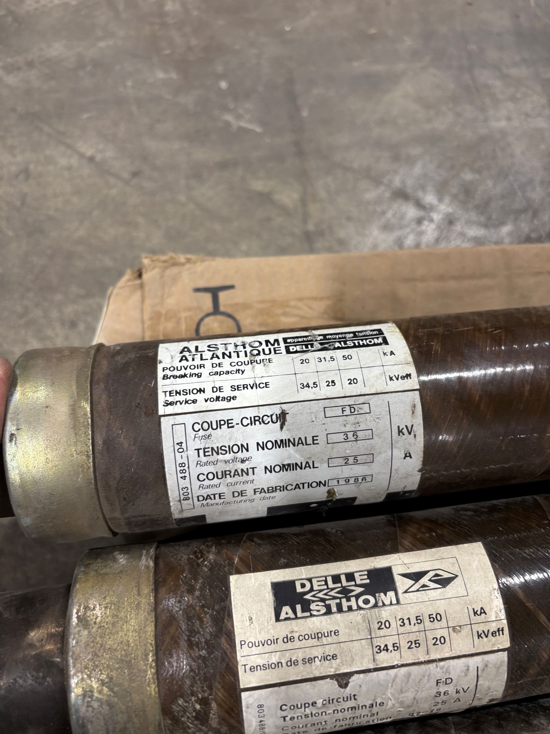Used Delle Alsthom 36kV 25A Power Fuse – Model 803488-04 | 20kA Interrupting Capacity