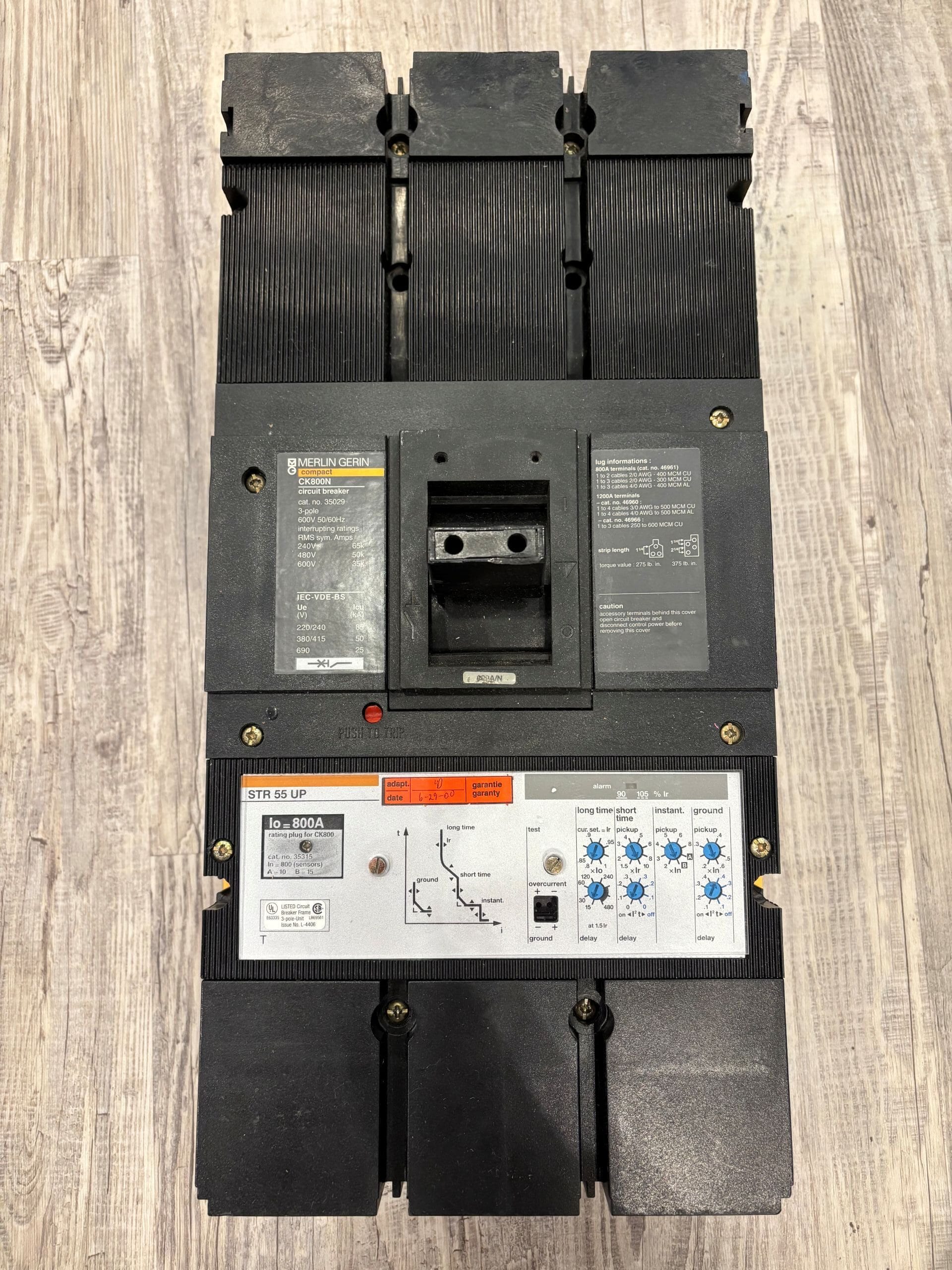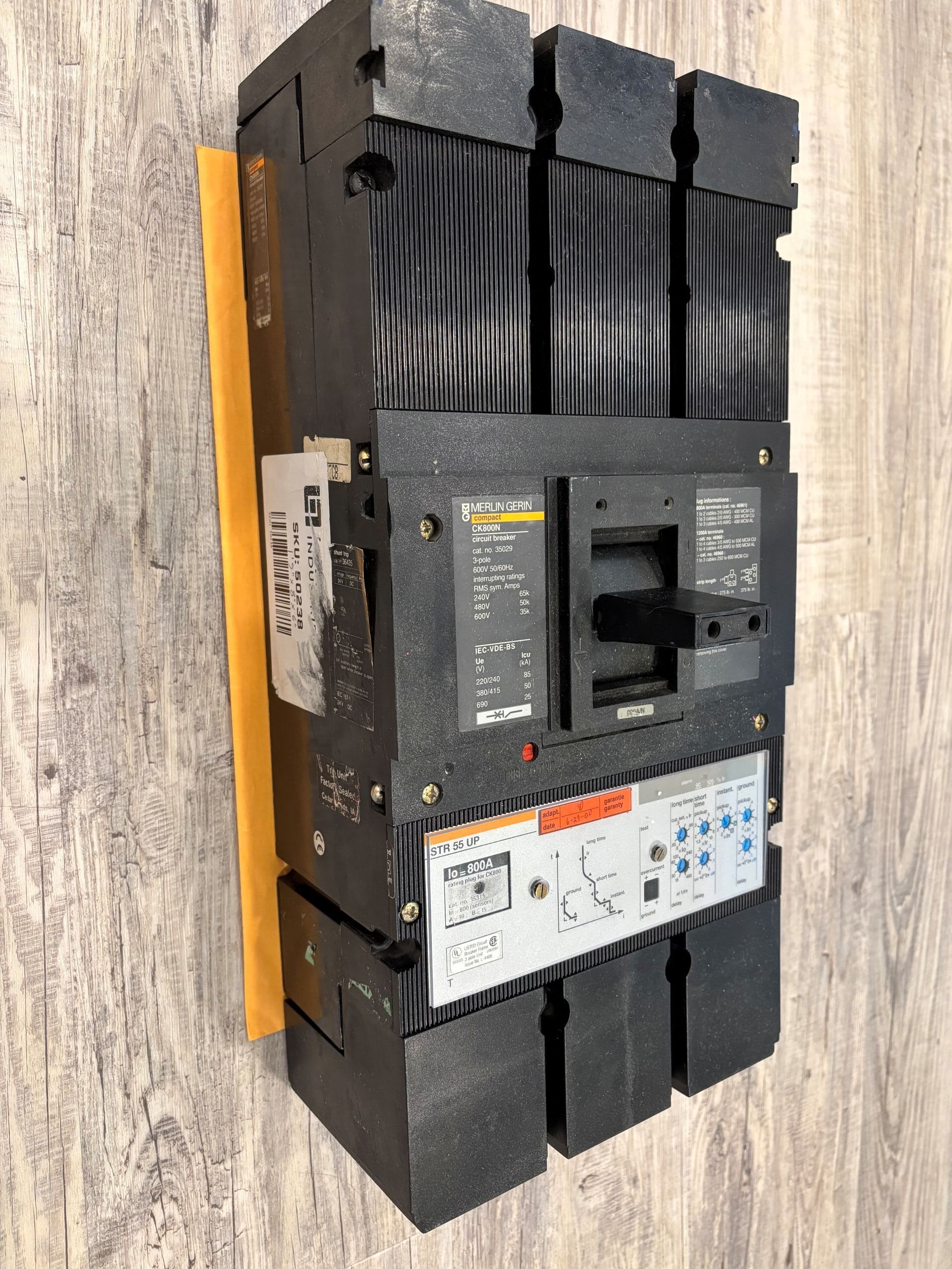Used Merlin Gerin CK3800N Molded Case Circuit Breaker – 800A, 600V, 3-Pole, 35kA, STR 55UP LSIG Relay