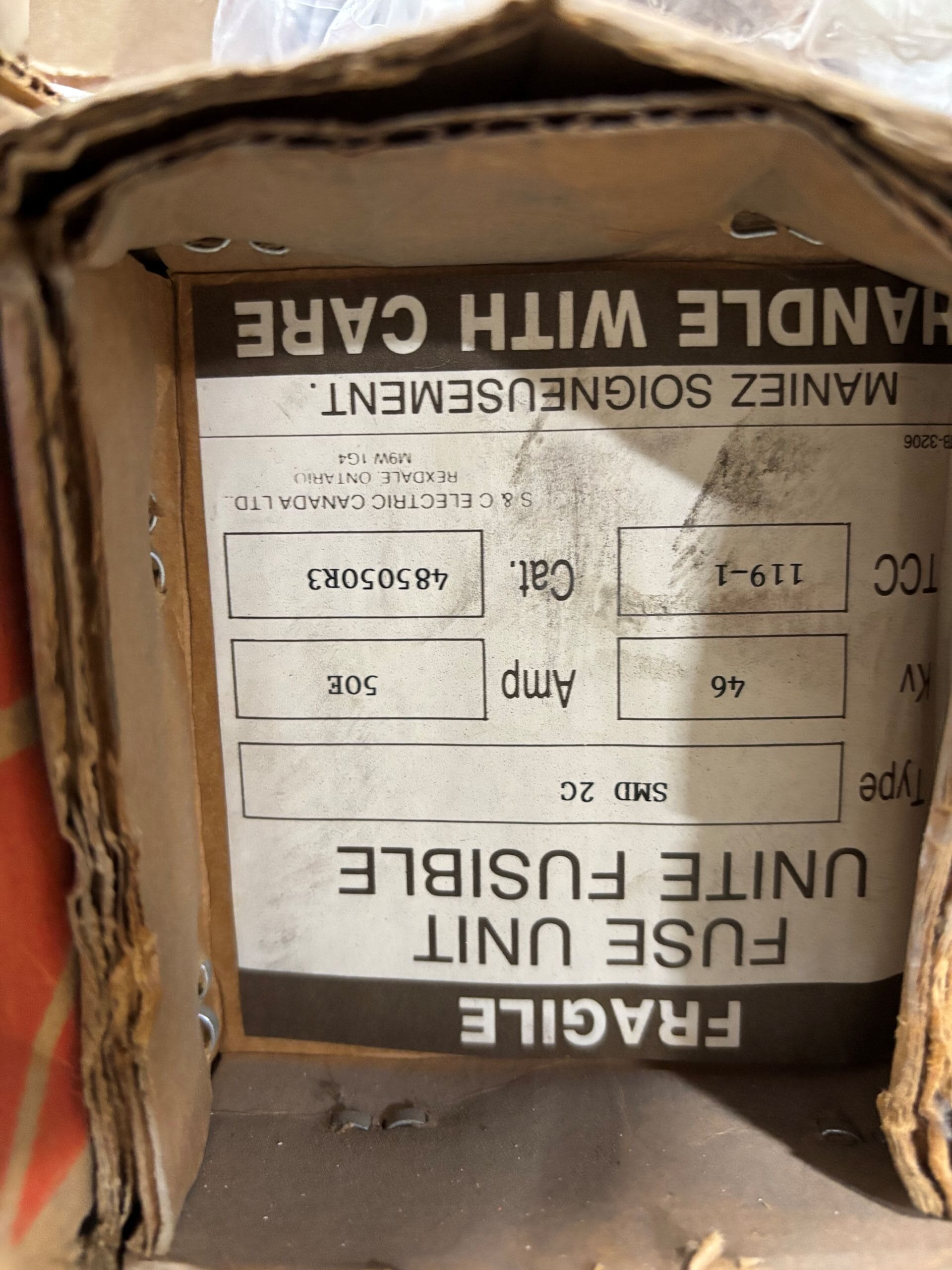 Surplus S&C SMD-2C 46kV 50E Power Fuse – Model 485050R3 | TCC 119-1